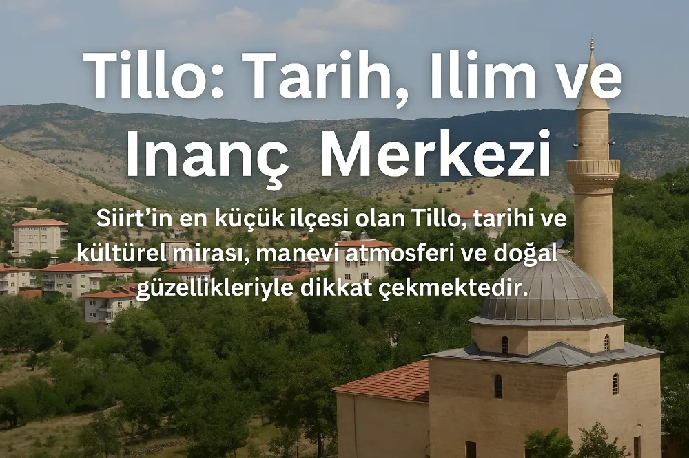 Tillo, Türkiye'nin Güneydoğu Anadolu Bölgesi'nde, Siirt iline bağlı küçük ama manevi atmosferiyle büyük anlam taşıyan bir ilçedir. 1990 yılında ilçe statüsü kazanan Tillo, tarih boyunca ilim, irfan ve tasavvufun merkezi olmuş, birçok önemli İslam alimine ev sahipliği yapmıştır. İsmi, Süryanice'de "Yüksek Ruhlar" anlamına gelen Tillo, mistik geçmişi, tarihi yapıları ve manevi değerleriyle tanınır.