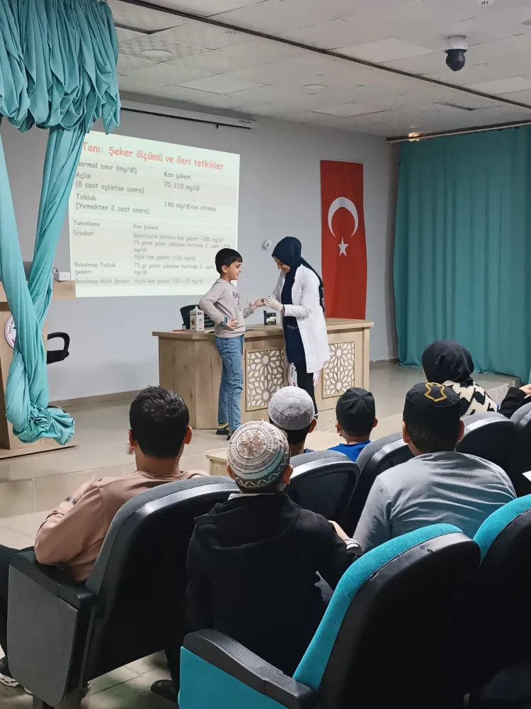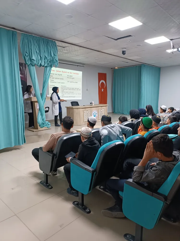 Tillo’da Okullarda Diyabet Farkındalığı programı kapsamında öğretmen ve öğrencilere diyabet eğitimi verildi. Tillo Toplum Sağlığı Merkezin’de görevli Hemşire Halime Bişkin ve Helin Sevgin, "Okulda Diyabet Programı" kapsamında Tillo Anadolu İHL’de öğretmen ve öğrencilere diyabet eğitimi verdi. Eğitimde diyabetin önemi ve sağlıklı yaşam alışkanlıkları anlatıldı.