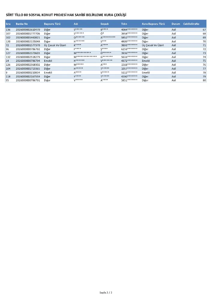 5 Ocak 2026 tarihinde yapılan kura çekiminin ardından, Tillolu vatandaşların uzun süredir merakla beklediği isimler netlik kazandı. Başvuru şartlarını taşıyan adaylar arasından yapılan kura sonucunda belirlenen hak sahiplerinin isimleri, ilgili listede paylaşıldı.