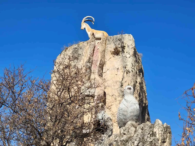 ilçe merkezi girişindeki kaya görenlerin dikkatini çekiyor. Bulunduğu alan ile uyumsuz bir görüntü veren gizemli kayanın doğal yollarla mı, yoksa insan eliyle mi yapıldığına dair net bir bilgi bulunmuyor. Düz bir alanda ve yerleşim yeri içerisindeki kayanın üzerinde, daha sonradan konulan bir yaban keçisi ve kınalı keklik heykeli ile çeşme bulunuyor. Yaklaşık 17 metre yüksekliğinde, 8 metre çapındaki kaya, ilçede ’Uzun Kaya’ olarak adlandırılıyor.