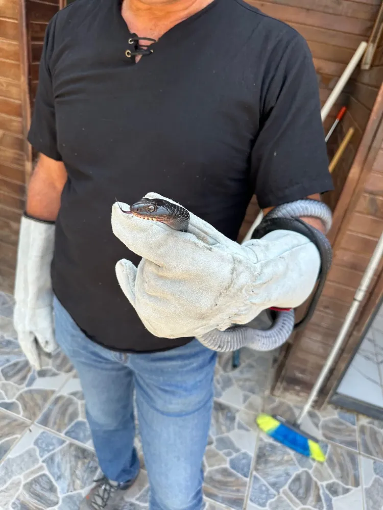 Tunceli merkez İnönü Mahallesi’nde bulunan bir işletmenin tuvaletinde yılan gören çalışanlar, durumu Doğa Koruma ve Milli Parklar Tunceli Şubesi’ne haber verdi. İhbar üzerine bölgeye giden ekiplerden doğa koruma görevlisi Murat Özel, yılanı bulunduğu yerde çubukla yakaladı.