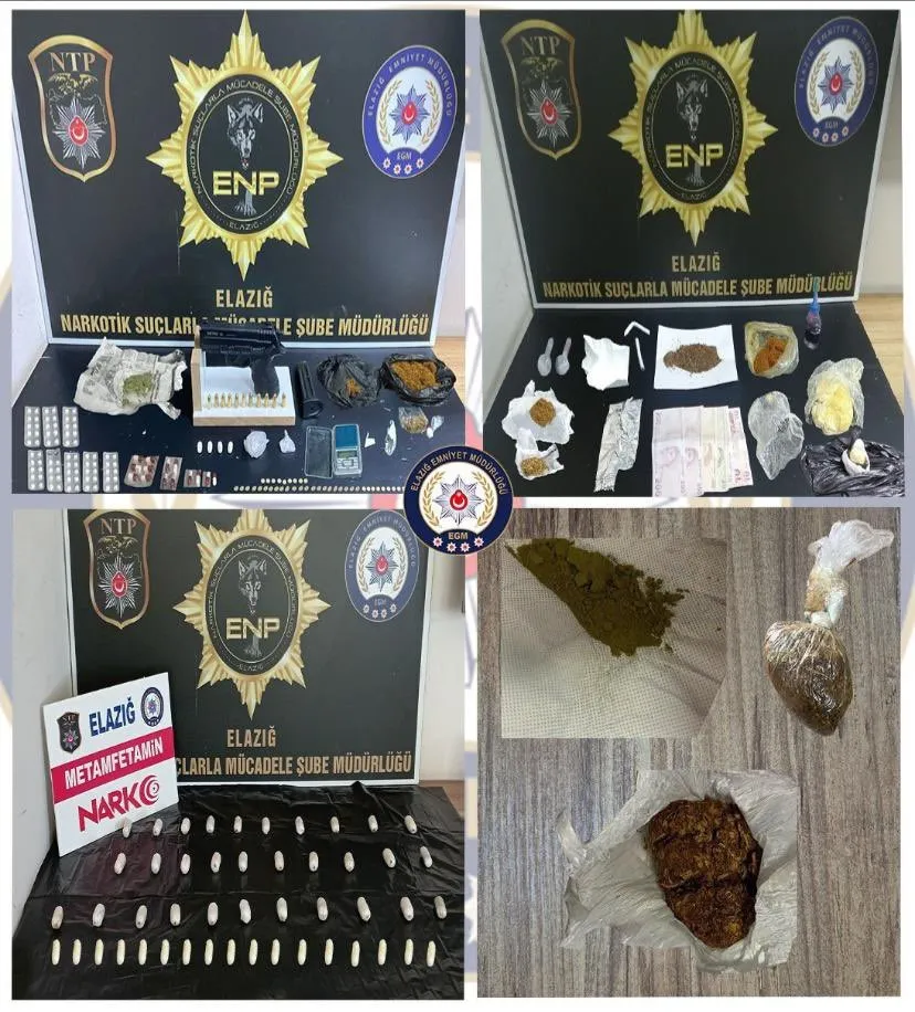 Elazığ İl Emniyet Müdürlüğü Narkotik Suçlarla Mücadele Şube Müdürlüğü ekipleri tarafından, uyuşturucu ile mücadele kapsamında uyuşturucu ve uyarıcı madde ticareti, kullanımı ve sevkiyatının engellenmesine yönelik çalışmalar sürüyor. Çalışmalarda, sınır kapısından ülkeye pasaportla giren yabancı uyruklu 2 şüpheli şahıs Elazığ’da yakalandı. Daha önceden kapsüller halinde yuttukları tespit edilen toplam, 48 parça halinde 585 gram metamfetamin maddesi hastane ortamında çıkartıldı. Ayrıca kentte yapılan diğer operasyonlarda; 12 parça halinde 397,35 gram sentetik kannabinoid maddesi, 7 parça halinde 59,45 gr esrar maddesi, 96 adet sentetik ecza maddesi, 1 adet hassas terazi, 1 adet ruhsatsız tabanca ve tabancaya ait 11 adet fişek ele geçirildi.