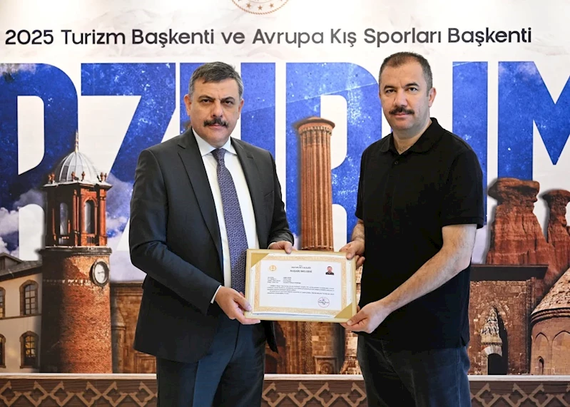 Erzurum Valisi Mustafa Çiftçi, çalışma ekibinde bulunan ve başka illere tayini çıkan iki personeli unutmadı, başarı belgesiyle ödüllendirdi.