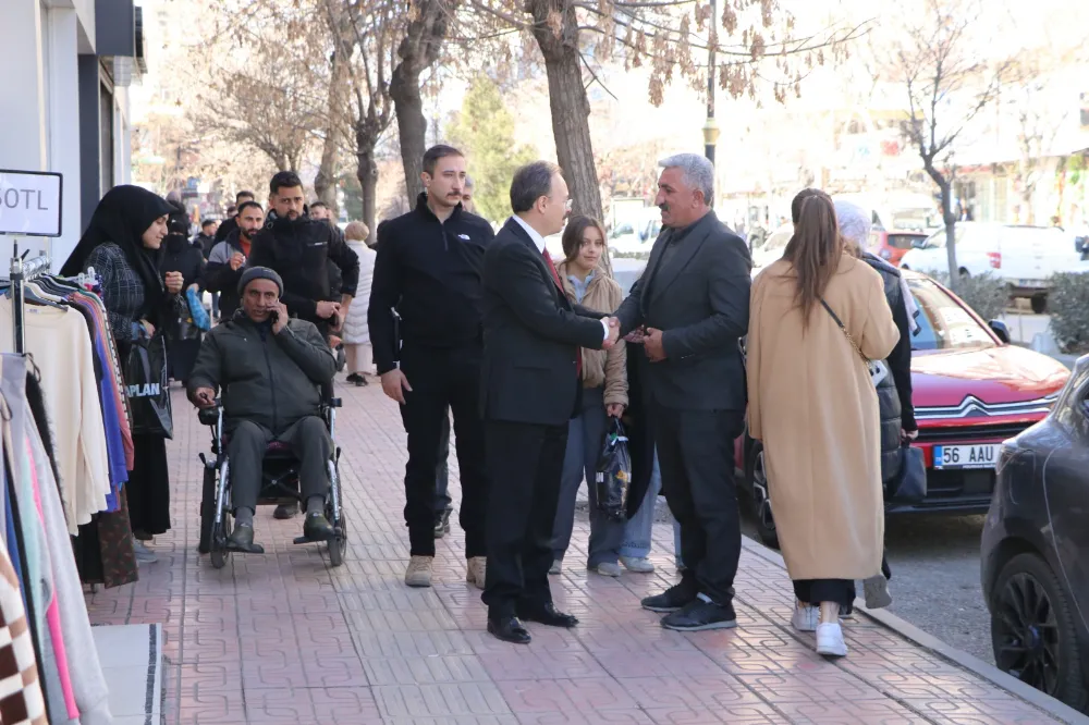 Siirt Valisi / Belediye Başkanvekili Dr. Kemal Kızılkaya, Caddepark’ta esnaf ve vatandaşlarla bir araya geldi. Siirt Valisi / Belediye Başkanvekili Kızılkaya, Su ve Kanalizasyon Müdürlüğü’ndeki incelemelerin ardından Caddepark’ta esnaf ve vatandaşlarla bir araya geldi. Esnaflarla hasbihal ederek talep ve önerilerini dinleyen Vali Kızılkaya kendilerine hayırlı ve bereketli kazançlar diledi. Daha güçlü ve daha yaşanılabilir bir Siirt için dur durak demeden çalışmalarımızı sürüdreceğiz. Sözlerine yer verdi.