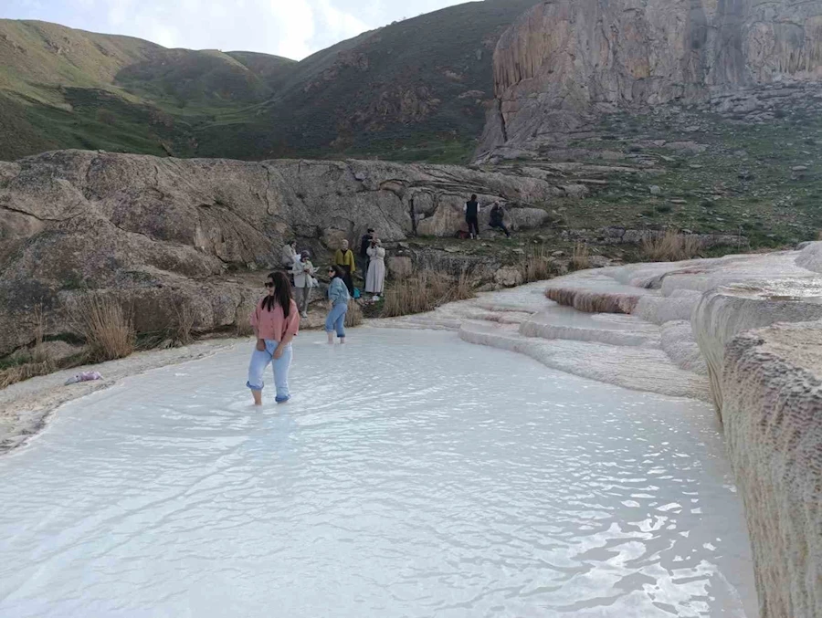 Başkale ilçesinin Dereiçi Mahallesi yakınlarında bulunan ve Pamukkale’yi andıran travertenler, vatandaşların akınına uğruyor. Van’ın Muradiye ve Erciş ilçesinden hareket eden kursiyer öğrenciler, Başkale ilçesindeki travertenleri gezdi. Halk Eğitim Merkezi Müdürlüğü destekli fotoğrafçılık kursu öğrencileri, travertenleri gezerek bol bol fotoğraf çektirdi.