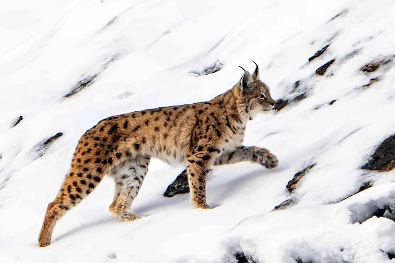 Erzincan’ın Kemaliye ilçesinde köye inip, yiyecek arayan vaşak, cep telefonu kamerasına yansıdı.