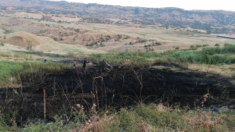 Yangın Veyselkarani ile Gümüşkaş köyü sınırlarında bulunan Mergane bölgede bulunan tarımsal alanda meydana geldi.