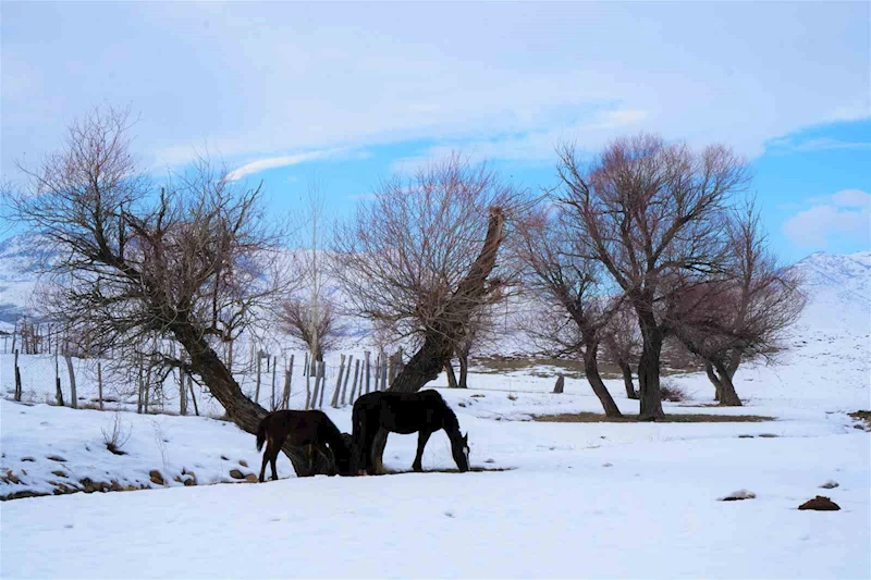 Muş’ta yaz aylarında yayla ve köy işlerinde kullanılan atlar kış mevsimi ile birlikte işler bitince doğaya terk ediliyor. Yaz aylarında yük taşımada ve binek olarak kullanılan bu hayvanlar, karlı arazilerde ve soğuk hava şartlarında yiyecek bulmakta zorlanıyor. Özellikle karın etkili olduğu bölgelerde açlıkla ve soğukla mücadele ederek hayatta kalmaya çalışan atların durumu yürek burkuyor.