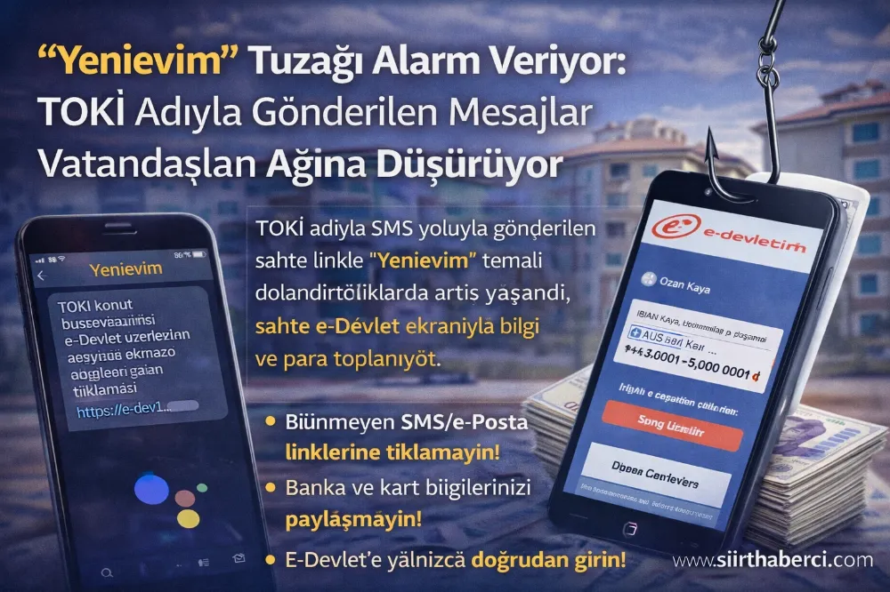 ABD merkezli teknoloji devi Google, kullanıcıların izni olmadan ses kayıtları yaptığı iddiasıyla açılan toplu davayı 68 milyon dolar ödemeyi kabul ederek kapatırken; Türkiye’de ise TOKİ adı kullanılarak yürütülen yeni bir dolandırıcılık yöntemi gündemde. Son haftalarda artan SMS’lerde, “Yenievim” başlığıyla gönderilen mesajlar üzerinden vatandaşlar sahte e-Devlet sayfalarına yönlendiriliyor.
