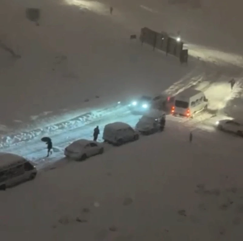 Hakkari’nin Yüksekova ilçesinde yoğun kar yağışı hayatı durma noktasına getirdi. Rampayı çıkamayan çok sayıda araç yolda kalırken, vatandaşlar araçlarını park edip evlerine yürüyerek gitti.