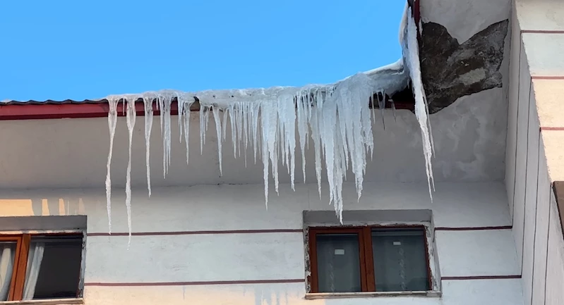 İlçenin resmen buz kestiğini belirten Bünyamin Genç, "Havalar geceleri baya soğuyor. Gördüğünüz gibi buz sarkıtları 2 metreyi geçmiş durumda. Kesinlikle dikkat edilmeli, çatıların altından geçenler dikkat edilmeli. İnşallah kısa sürede hava düzelir" dedi.